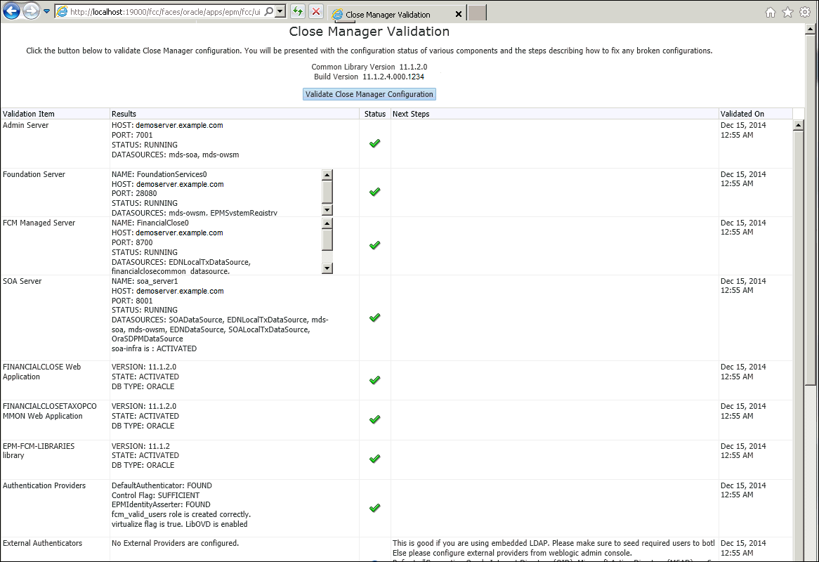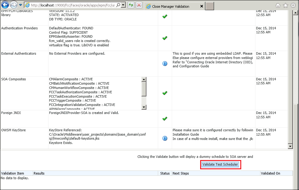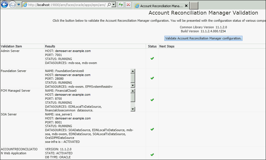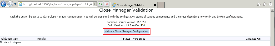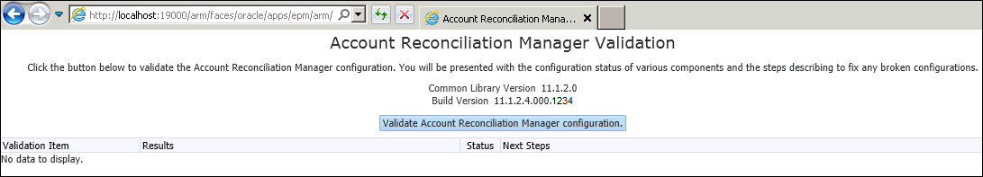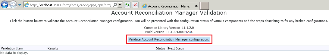 To validate the account reconciliation manager configuration, click on the Validate Account Reconciliation Manager Configuration button.