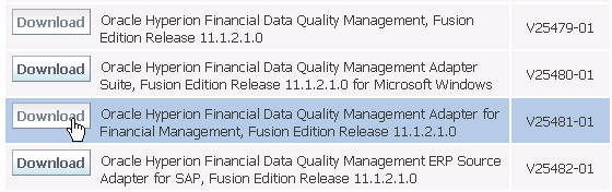 On the Oracle E-Delivery site, select Oracle Hyperion Financial Data Quality Management Adapter for Financial Management, Fusion Edition Release 11.1.2.1.0, and click Download.