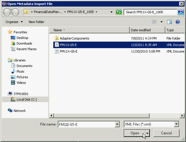 Note: FM11x-G5-E.xml is the standard HFM adapter, and FM11i-G5-E.xml is the Intercompany Detail adapter.