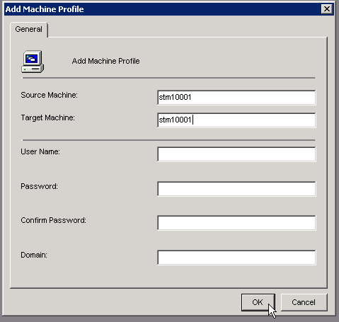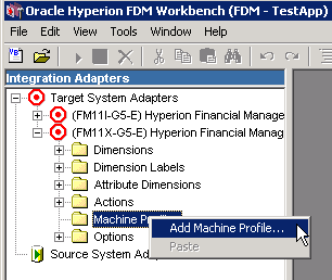 In the navigation pane, expand Target System Adapters, then FM11x-G5-E, right-click Machine Profile, and select Add Machine Profile.