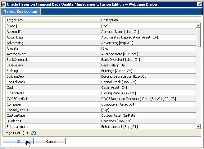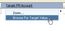 Click in the Target FM Account cell, and select Browse for Target Value.