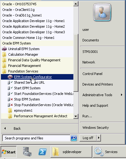 Select Start, then Programs, then Oracle EPM System, then Foundation Services, and then EPM System Configurator.