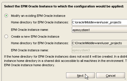 On the Oracle Instance panel, select Modify an existing EPM Oracle instance, and click Next.