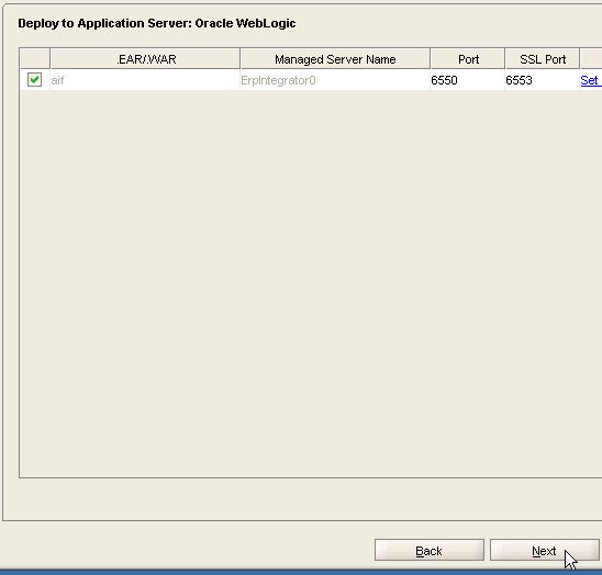 On the Oracle WebLogic panel, accept the default values, and click Next.