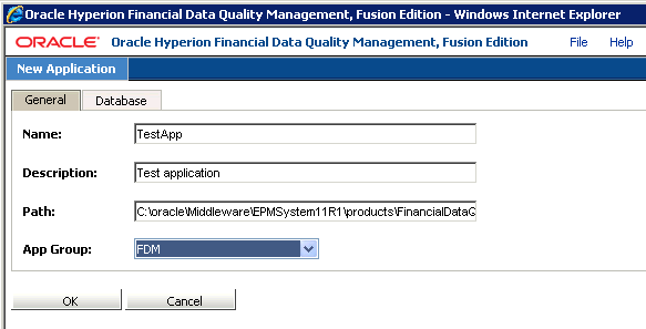 In this topic, you create an FDM application and database. After creating the new application, you install the standard reports and templates.
