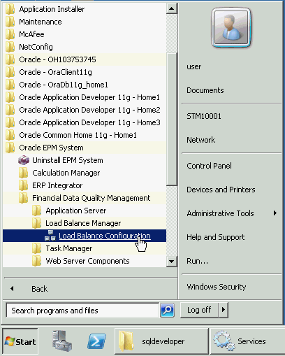 Select Start, then Programs, then Oracle EPM System, then Financial Data Quality Management, then Load Balance Manager, and then Load Balance Configuration.