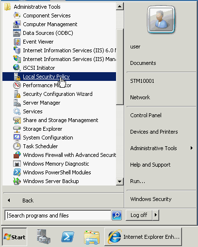 Select Start, then Programs, then Administrative Tools, and then Local Security Policy.