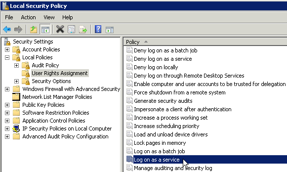 In this topic, you assign the "Log on as a service" user permission to your administrator account. This user right is required for running scheduled tasks in Task Manager. You then configure the Task Manager and Application Manager components.