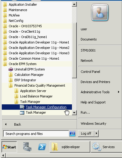 Select Start, then Programs, then Oracle EPM System, then Financial Data Quality Management, then Task Manager, and then Task Manager Configuration.