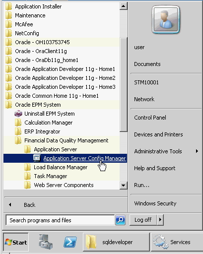 Select Start, then Programs, then Oracle EPM System, then Financial Data Quality Management, then Application Server, and then Application Server Config Manager.