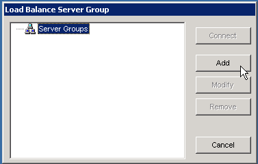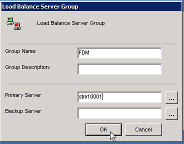Enter a group name and description, enter the name of your primary load balance server, and click OK. Note: You can also add a backup server name.