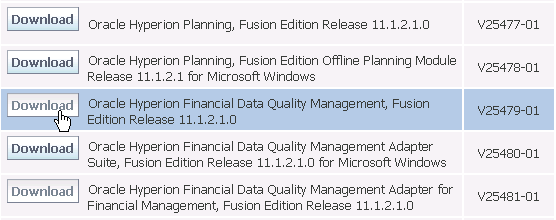 Download the FDM installation files. On the Oracle e-Delivery site, locate Oracle Hyperion Financial Data Quality Management, Fusion Edition Release 11.1.2.1.0, and click Download.
