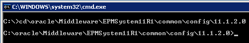 At a command prompt, navigate to the directory that contains EPM System Configurator. By default, the directory is EPM_ORACLE_HOME/common/config/11.1.2.0.