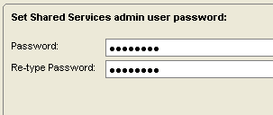 On the Set Shared Services admin user password panel, enter a password for the Shared Services admin user, and click Next. In this tutorial, you enter hyperion.