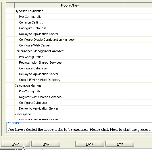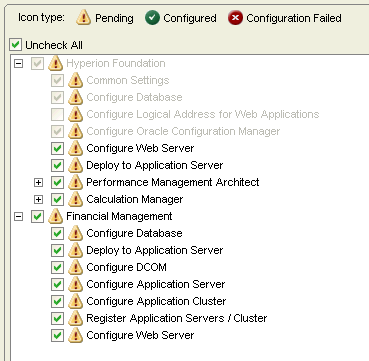 On the Task Selection panel, select the products and tasks to configure for this machine. In this example, you configure Hyperion Foundation and Financial Management.