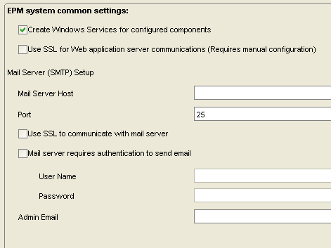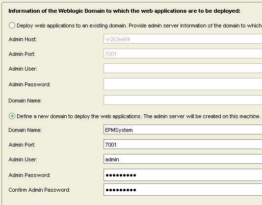 Enter the following login credentials. Note: You specified the password for the admin user in EPM System Configurator.