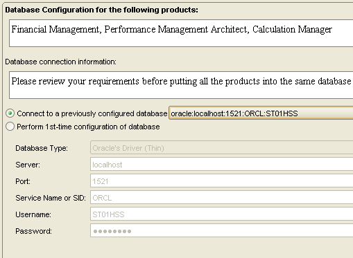 Have created a database schema for Hyperion Shared Services and Enterprise Performance Management System products, and assigned appropriate roles or rights for the users or resources. You must use the same database schema for Shared Services and all EPM System products in a silent configuration. |
