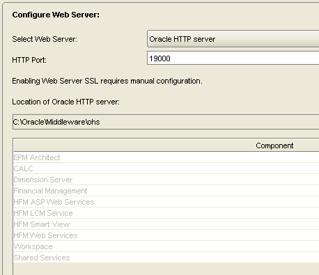 On the Configure Web Server panel, review the information for the Oracle HTTP Web server, and click Next.