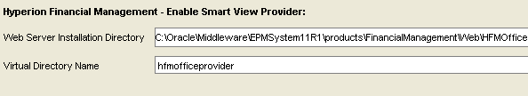 On the Financial Management Smart View provider panel, specify the components for the Smart View Web application or accept the default values, and click Next.