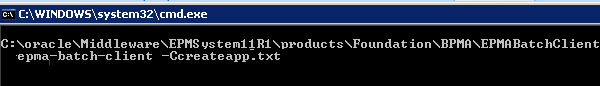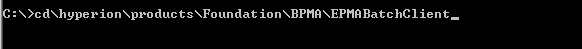 Navigate to the directory where Performance Managment Architect Batch Client is installed. By default, the location is C:\Hyperion\products\Foundation\BPMA\EPMABatchClient.