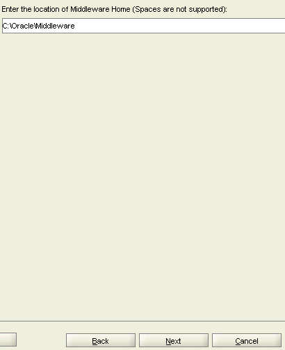 On the Destination panel, enter the name of your Middleware Home directory, and click Next.