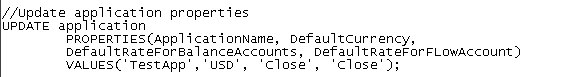 Enter the following information to update the application properties. You must define a default currency and a default rate for Balance and Flow account types.