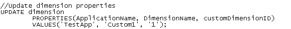 Enter the following information to update the Custom1 dimension. You must assign a custom dimension ID to each custom dimension.