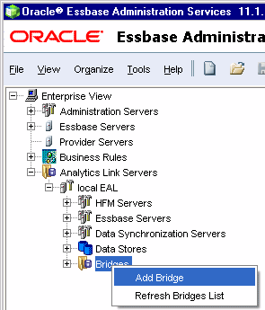 In the Oracle Essbase Administration Services console, double-click to open a bridge.