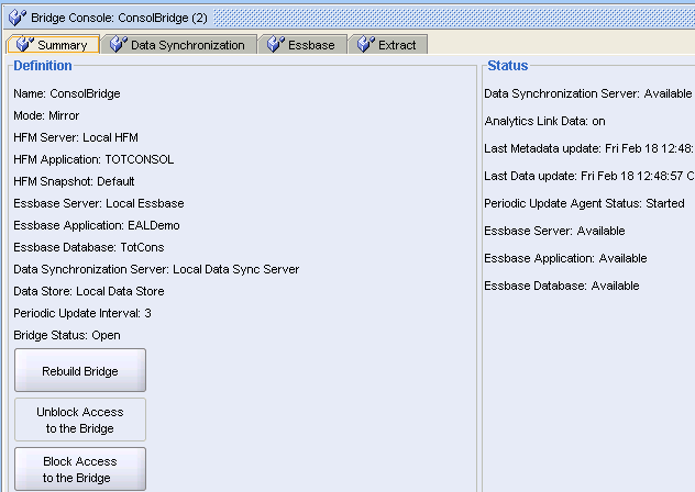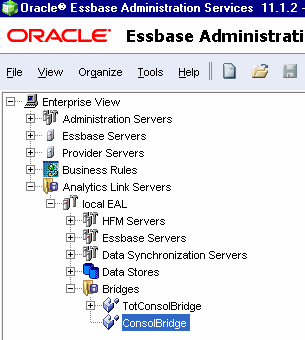 Note: When you created the bridge, the TOTCONSOL Financial Management application was linked to the EAL Demo Essbase application.