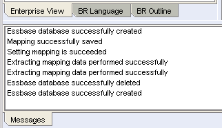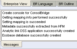 The bridge is displayed in a console. Note: The Essbase database and application have still not been created.