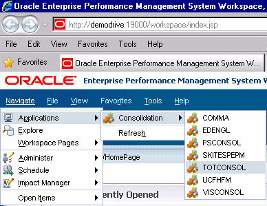 Select Navigate > Applications > Consolidation > TOTCONSOL (name of the application).