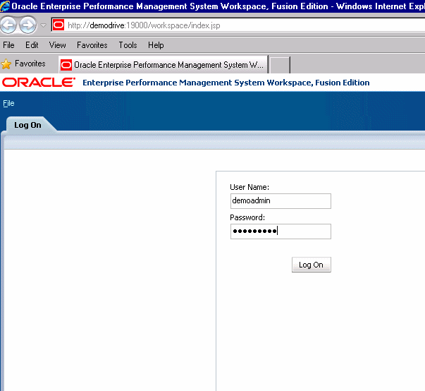 On your desktop, perform the following actions: a) Double-click the Workspace icon. b) Enter your user name and password. c) Click Log on to log on to Workspace.