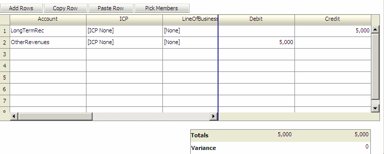 Place your cursor in the first cell in the Account column, click Pick Members, and enter the following member information:
