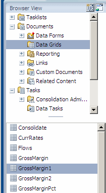 In the Browser View pane, navigate to Data Grids > GrossMargin1.