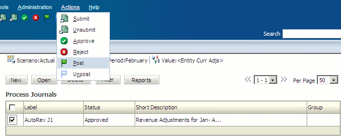 Select the check box to the left of AutoRev J1, and select Actions > Post.