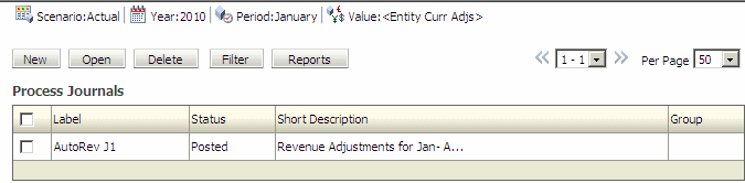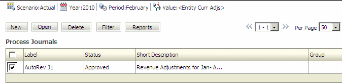 Auto-reversing journals affect two periods of data. You post an auto-reversing journal to adjust values in one period; the system automatically creates a journal that reverses those adjustments for the next period. The journal created in the following period has the Approved status. You can then post this approved journal for the reversal to take effect.