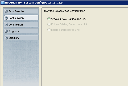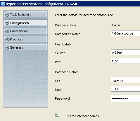 In this part of the tutorial, you create and configure an interface table in Hyperion EPM System Configurator 11.1.2.0. You configure the interface table by creating data source links that are used during data synchronization and profile creation.