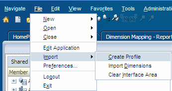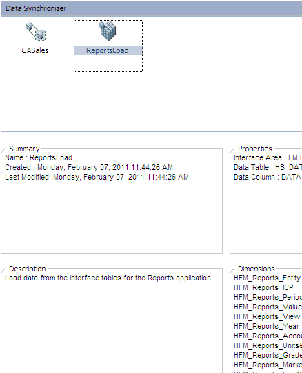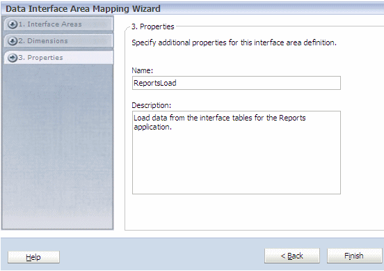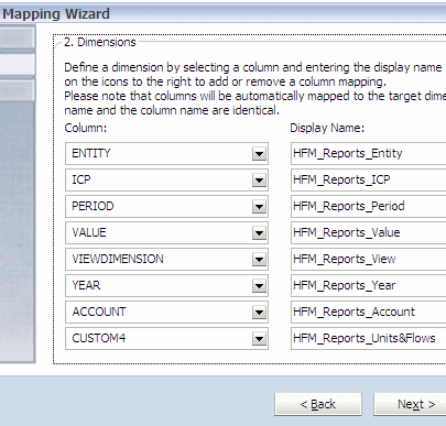 If required, manually map the dimensions of the interface area (Source) and Reports application (Destination).