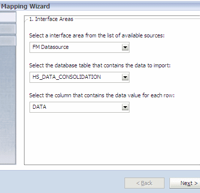 Select Hyperion Data Interface Area, and click Next.