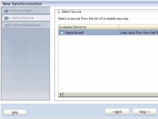On the Select Source page, select ReportsLoad, and click Next.