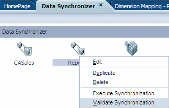 Right-click the Reports synchronization, and select Validate Synchronization.