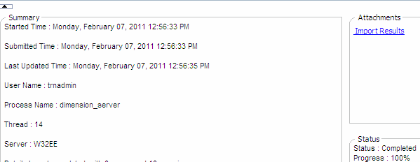 Perform the following actions: a. Verify that the import was successfully completed. b. Click Import Results to review the results.
