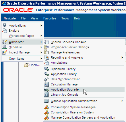 Select Navigate, then Administer, and then Application Upgrade.