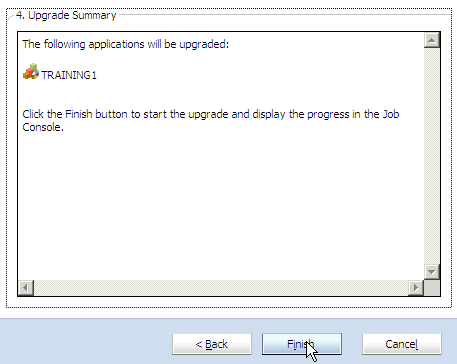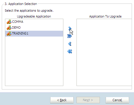Under Upgradeable Application, select TRAINING1, click the right-arrow button, and then Next.