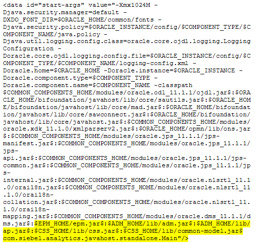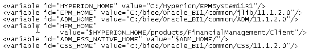 To connect to Financial Management data sources in OBI EE, you must edit the opmn.xml file on each computer running the OBI EE JavaHost process to include environment variables required by Financial Management.