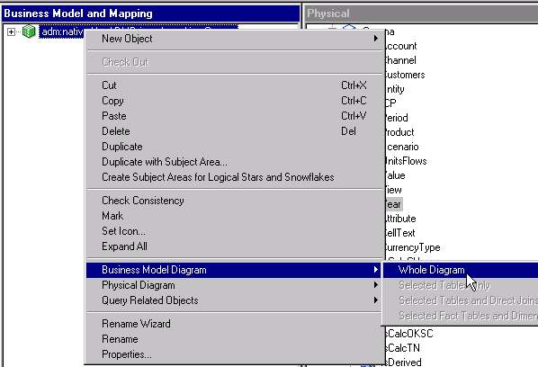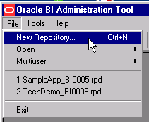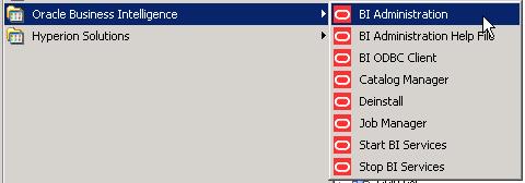 Select Start > Programs > Oracle Business Intelligence > BI Administration to open the Oracle BI Administration Tool.