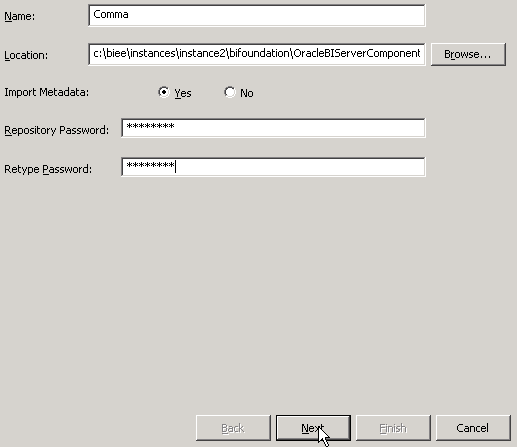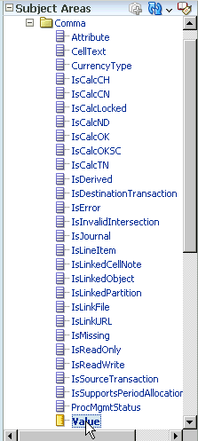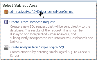 Select the Comma subject area. Note: the displayed name comes from the Presentation Layer. You can rename the name in the BI Administration Tool.