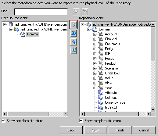 The Create New Repository - Select Metadata Objects dialog box is displayed.