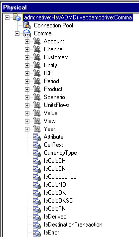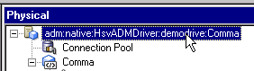 On the Physical tab, expand adm.native.HsvADMDriver:<server>:<application>, and then Comma.