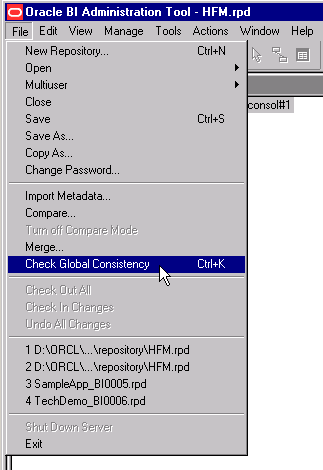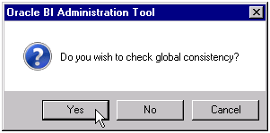 In the OBI EE Administration Tool, select File > Check Global Consistency.